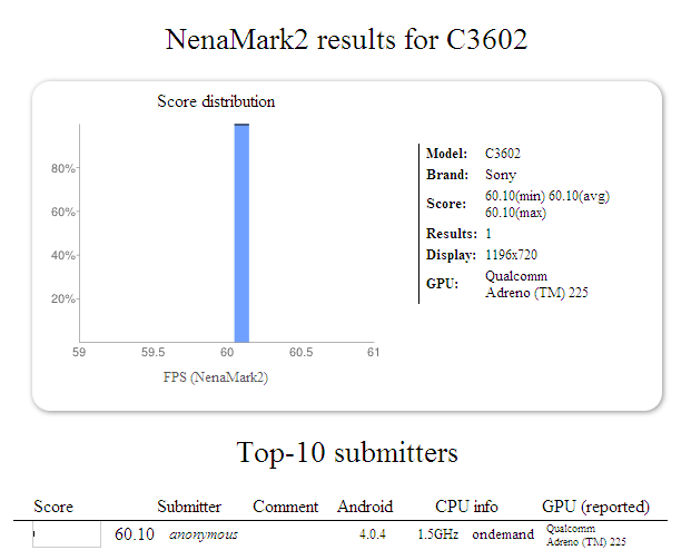Согласно данным Xperia Blog со ссылкой на результаты тестирования будущей новинки в бенчмарке NenaMark2, смартфон Sony Xperia C3602 станет обладателем однокристальной системы Qualcomm Snapdragon S4 (MSM8260A или MSM8960), в состав которой входит CPU с двумя ядрами и тактовой частотой 1,5 ГГц плюс графика Adreno 225. Кроме того, имеется сенсорный дисплей с разрешением 720 x 1280 пикселей, диагональ которого, вероятно, превысит 4 дюйма, и Android 4.0.4 Ice Cream Sandwich в качестве программной платформы. Анонс новинки может состояться в рамках CES 2013 или MWC 2013.