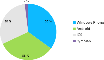 Аналитическая компания Market Vision представила данные о рынке смартфонов Финляндии по результатам своего исследования. В результате выяснилось, что финский рынок почти поровну разделён между тремя ведущими платформами — Android, iOS и Windows Phone, причём последняя ОС обходит двух основных конкурентов с долей 35% против 33% и 30% для Android и iOS соответственно.