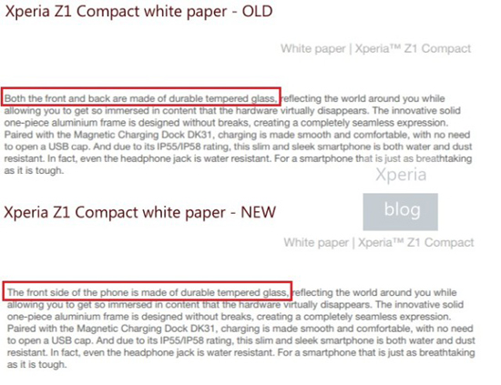 Эта короткая ремарка может означать лишь то, что задняя поверхность аппарата выполнена из поликарбоната, а не из стекла, чего так ждали потенциальные владельцы Xperia Z1 Compact. Других изменений в технических декларациях не было обнаружено.