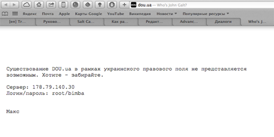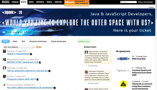 Макс Ищенко, основатель и владелец ресурса DOU.UA, представлявшего собой самое крупное сообщество программистов Украины и соседних стран, принял решение закрыть проект. Главная страница по состоянию на 18:00 по московскому времени выглядит вот так: