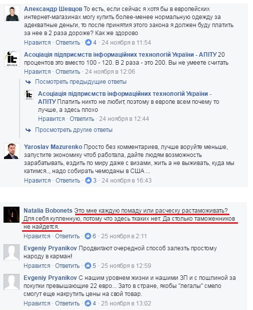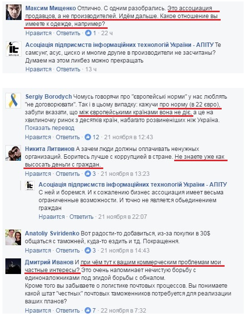 «Почему же покупатели должны платить НДС при покупке внутри страны и быть освобожденными от его уплаты при заказе товаров из-за границы? Нам не нужна оборона, дошкольное и школьное образование, защита от бандитов, хорошие дороги, поддержка науки и культуры, эффективные и честные государственные служащие? Может мы заинтересованы в том, чтобы поддерживать рабочие места и давать заработок работникам за границей? Или мы хотим кормить коррумпированных чиновников, которые будут закрывать глаза на злоупотребления? Конечно, посылки не являются сейчас основным каналом теневого импорта. Однако наблюдается тенденция его стремительного роста, и именно поэтому Ассоциация обратила на него внимание », - объясняют в АПИТУ.