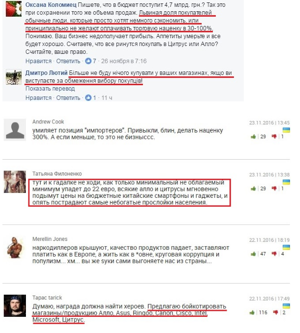 Как отметил гендиректор интернет-магазина одежды Answear Виктор Супеев, нужно не снижать, а наоборот, поднимать беспошлинный порог в 300 евро. По его словам, принятие этого закона будет означать фактически закрытие бизнеса компании в Украине. Денис Кубрак в свою очередь приводит пример, почему покупать за рубежом станет невыгодно. Например, говорит он, сейчас популярные среди молодежи кроссовки Nike Air Huarache можно купить за 3,3 тысячи гривен, из которых примерно 100 гривен - цена доставки. Если же беспошлинный порог уменьшится до 22 евро, то стоимость этого товара возрастет минимум на 1000. «Учитывая то, что в Украине их можно купить за 4,5-5 тысячи гривен, делать заказы из-за границы не имеет смысла», - подытожил Кубрак.