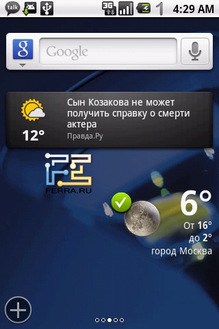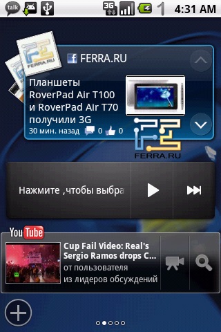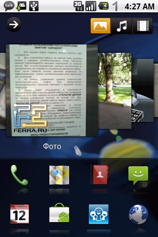 А в сложенном виде ярлыки оставляют место для рабочей области, также разделенной на несколько экранов. На центральном находятся только лишь часы. Левый экран выделен под нечто вроде диспетчера задач. Он представлен рядом миниатюр скриншотов недавно запущенных программ. Разумеется, наличие здесь картинки вовсе не означает, что соответствующая программа до сих пор работает — Android убивает процессы по своему усмотрению, никого не предупреждая. Наконец, правый экран приютил медиатеку: изображения, аудиотреки и видеоролики.