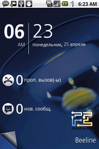 «Родной» рабочий стол Android с виджетами на самом деле никуда не пропал, он доступен через иконку под часами либо по долгому нажатию сенсорной клавиши «Домой».