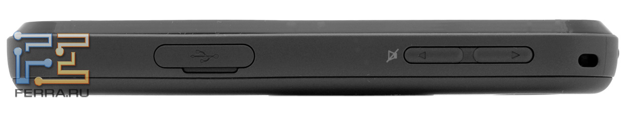 Верхний торец отведён для кнопки включения и блокировки телефона, а также для разъёма 3,5 мм, который позволяет подключать «обычные» наушники.