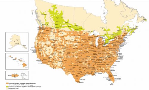 Сайт AT&T не намного яснее. Там есть страница с тарифами, но не приводится никаких сравнений между начислениями в роуминге и в домашней сети. Также приводится карта покрытия, которая никак не предупреждает о роуминговых тарифах на трафик в Канаде.