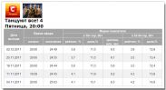 05 декабря 2011Выпуск танцевального шоу "Танцуют все" на телеканале СТБ в пятницу, 2 декабря, собрал долю 11,5%, рейтинг 3,8% (предварительные данные GfK по аудитории 18+, 50 тыс+). По аудитории 18-54, доля составила 12,9%, рейтинг 3,9%.